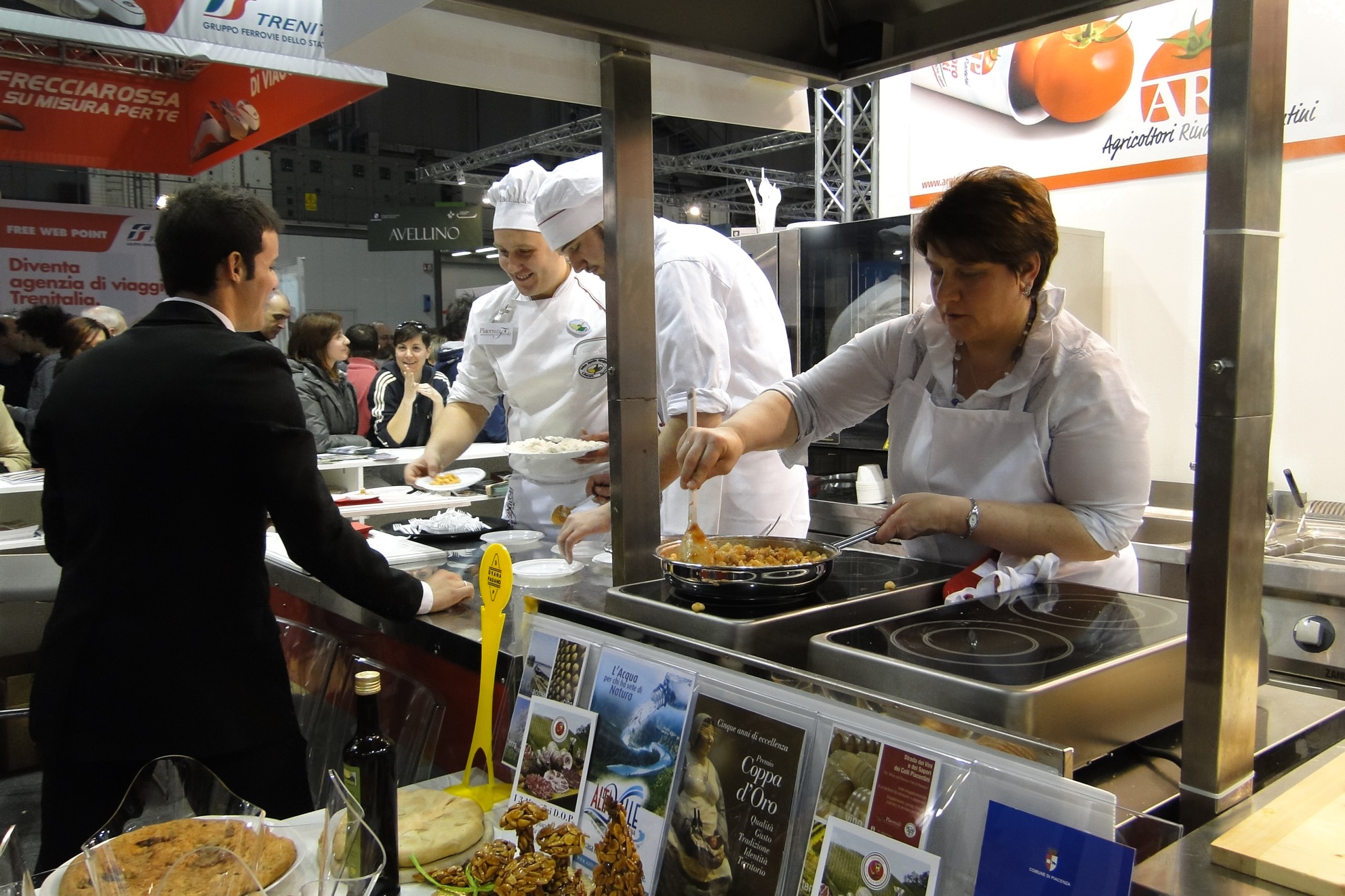 Per la chiusura della Bit di Milano Piacenza schiera la Valtidone e la Valdarda. Lo stand “Piacenza una Provincia da Favola” si è trasformato questa mattina nella più classica delle cucine piacentine, portando in scena le rasdore, che si sono cimentate nello show “Mani in pasta”. In mattinata Silvana Marchesi e Silvia Muselli, della pro loco Strà-Trevozzo presieduta da Walter Cremona, hanno preparato sotto l’occhio incuriosito di molti visitatori i tradizionali anolini piacentini con ripieno di stracotto cotto in brodo in terza. Insieme ai classici “anvei”, le pro loco della Valtidone hanno portato a Milano la Chisola di Borgonovo (focaccia con i ciccioli), i Busslanein (ciambelline) di San Nicolò e l’olio extra vergine prodotto dall’associazione La Valtidone, rappresentata oggi dal presidente Valentino Matti.
