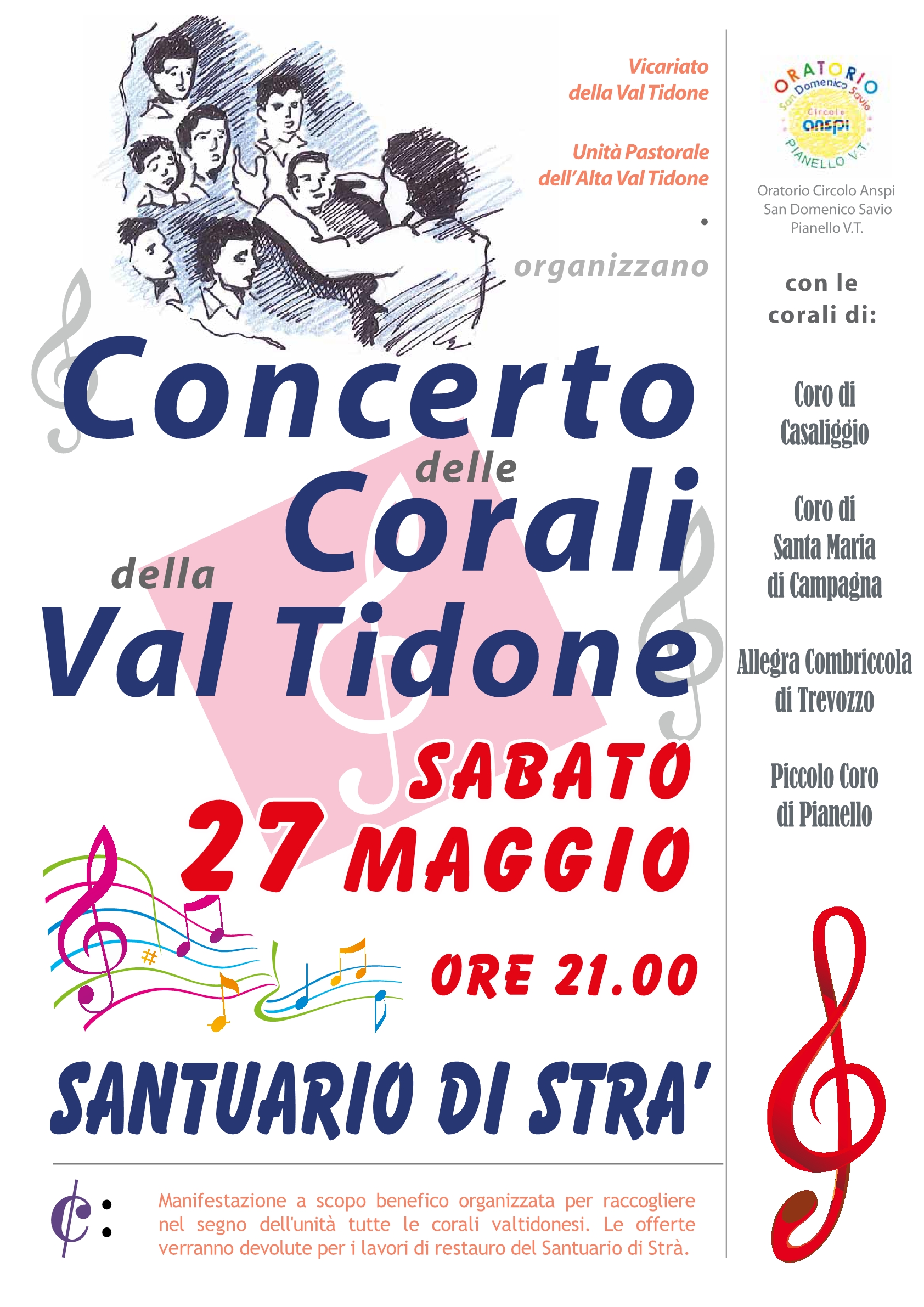 Il tradizionale appuntamento del Concerto delle Corali della Val Tidone al Santuario di Strà Sabato 27 Maggio alle 21 con le corali di Pianello, Trevozzo, Casaliggio, Santa Maria di Campagna.