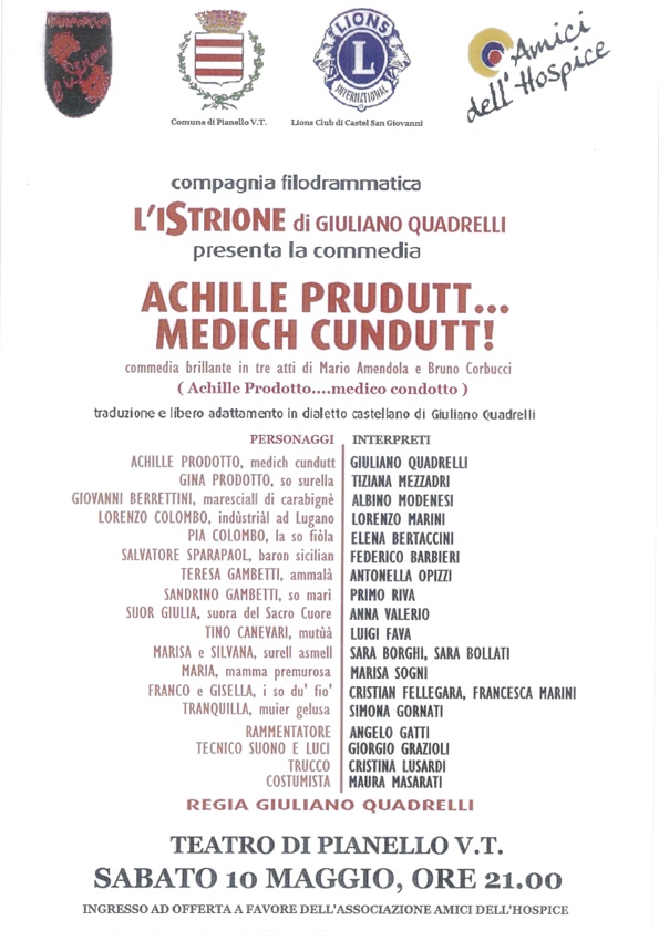 Pianello Val Tidone - Sabato 10 Maggio - ore 21.00 - Nuovo Teatro di Pianello
