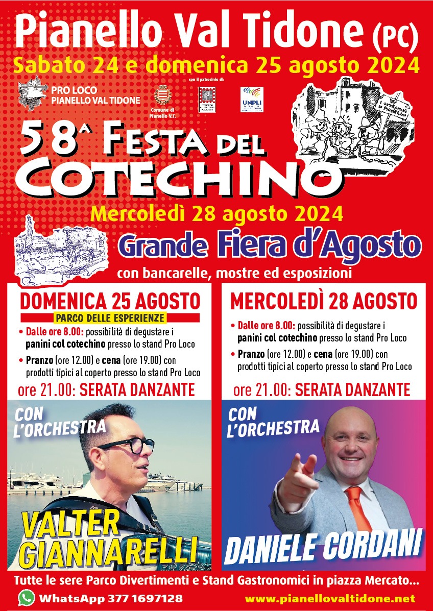 Pronti per l'edizione 2024 della Festa del Gigi per la 58^ edizione della Festa del Cotechino e per la Grande Fiera d'Agosto a Pianello Val Tidone!